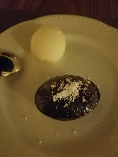 The Grill: This dinner option offers steakhouse-style entrees with indoor and outdoor seating options in the courtyard. Of course, we opted to eat outside. Tom enjoyed the carbonara pasta while I indulged in the mixed grill, or what we refer to as "the meat plate". What a treat that was! Don't forget to speak to them about the wine selection. This location offers a variety of meat-based dishes, as well as seafood and vegetarian options. This was one of our favorites. Dress is casual elegance.